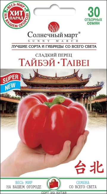 Тайбей - небольшое, но крепкое растение высотой 45-50 см с обильным плодоношением. Эти колокола блочные и довольно однородные, имеют по 4 лепестка и толстые, сочные, упругие стенки. Они идеально подходят для начинки, потому что сохраняют свою текстуру при готовке, но они настолько вкусные и ароматные, что Вы непременно попробуете их сырыми. Этот перец можно собирать чуть более, чем через 2 месяца после высадки рассады, когда они имеют насыщенный зеленый цвет. Для более вкусных и красивых плодов, оставьте их на растении немного дольше, пока они приобретут красный оттенок. Тайбей устойчив к неблагоприятным погодным условиям, для новичков нет более простого перца! Он несет крупные блестящие плоды с сочно-сладкой красной мякотью, весом около 130 г, но в Китае этот сорт даёт плоды до 300 г. во влажном климате. Толстые и хрустящие фруктовые стенки имеют отличный вкус в салатах, замечательны во всех жареных блюдах. Этот перец хорошо маринуется для хранения осенью и зимой.