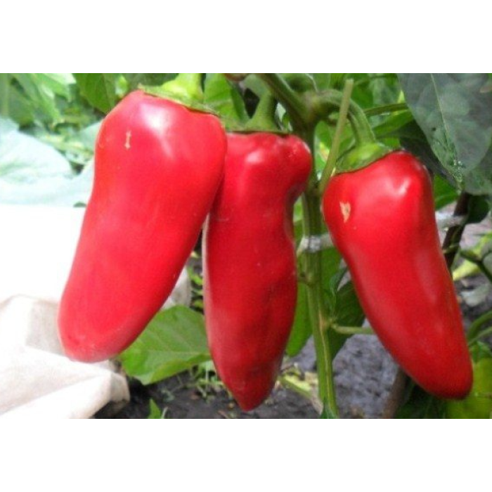 Ранний сорт. Куст высотой 65-70 см, имеет большие плоды красного цвета, массой 100-120 г, конусовидной формы. Толщина стены до 8 мм. Сорт высокоурожайный, на открытом грунте, на одном растении формируется 8-10 плодов. Плоды очень сочные, приятного сладковатого вкуса с ароматом. Употребляют в свежайшем виде и для всех видов переработки. Выращивают рассадным способом.