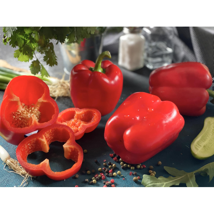 Среднеспелый сорт. Период от всходов до начала спелости 120-140 дней. Кусты высотой 50-70 см. Плоды крупные, массой 150-200 г, кубовидной формы, длиной 11-12 см, диаметром 8-9 см, красной окраски. Толщина стен 7-9 мм. Бе... Читать далее...