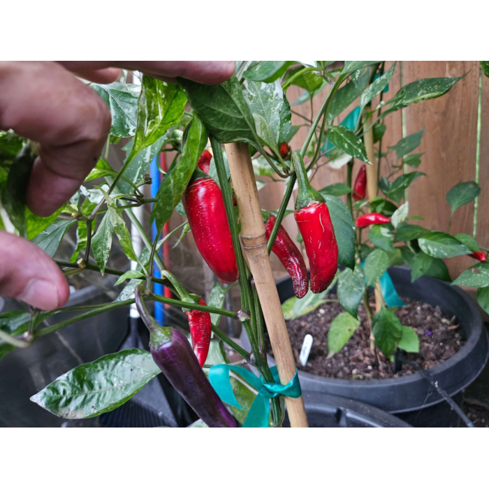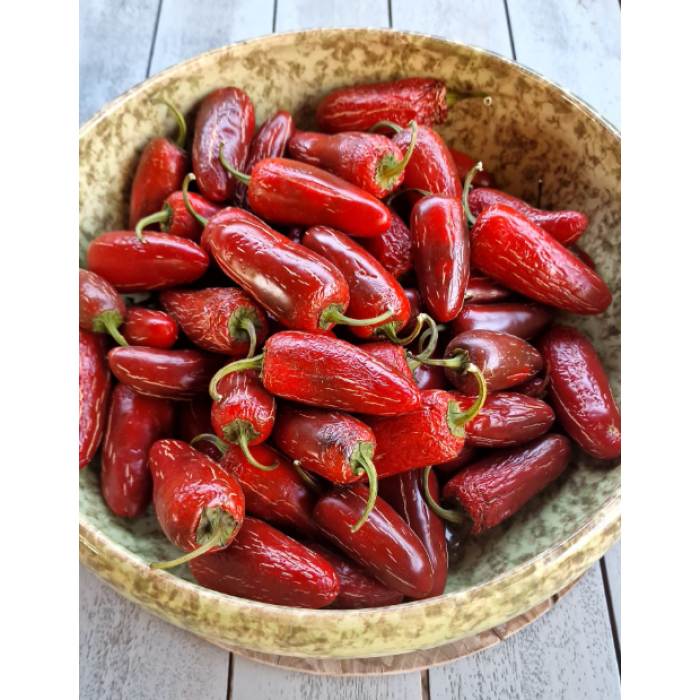 Куст даёт большое количество аккуратных перчиков весом около 8–12 г, длиной 5–7 см. Плоды не растрескиваются, долго держатся на кусте и отлично подходят как для свежего использования, так и для сушки.