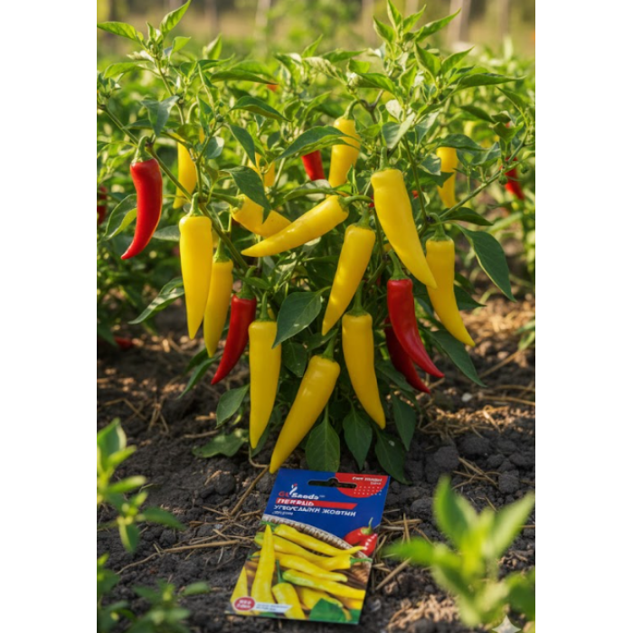 Раннеспелый сорт острого перца с яркими жёлтыми плодами и насыщенным пикантным вкусом. Отлично подходит для выращивания в открытом грунте и теплицах. Формирует обильный урожай удлинённых конусовидных перцев, которые по мере созревания меняют цвет от светло-жёлтого до насыщенно-красного.