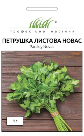 Петрушка листовая Новас — один из самых популярных сортов крупнолистной петрушки в Украине. Новас — ранний сорт листовой петрушки производства компании Clause (Франция). Вегетационный период растений составляет всего 30–45 суток, благодаря чему можно получать урожай свежей зелени в максимально короткие сроки. Петрушка предназначена для возделывания в открытом грунте. Характеризуется быстрой регенерацией после уборки и способностью давать минимум три урожая за один сезон, без уменьшения размеров листовой пластины. При выращивании этой петрушки с конца весны до середины осени можно получить пять урожаев качественной зелени. Сорт Новас формирует мощное растение с сильной энергией роста. Черешки имеют среднюю высоту. Листья отличаются крупным размером, насыщенной зеленой окраской и классическим настоящим ароматом петрушки. Зелень не склонна к пожелтению и сохраняет яркую окраску в течение всего сезона выращивания. Петрушка предназначена для употребления в свежем виде и разных видов переработки: консервирования, засолки, сушки, заморозки. Данный сорт ценится за дружный рост зелени и способность давать высокие результаты в различных климатических условиях.