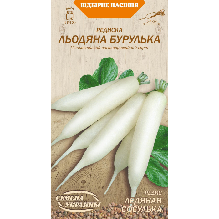 Поздний сорт. Период от всходов до созревания 35-40 дней. Корнеплоды крупные, удлиненной формы, длиной 5-7 см, массой 45-60 г, белого цвета. Без ГМО.... Читать далее...