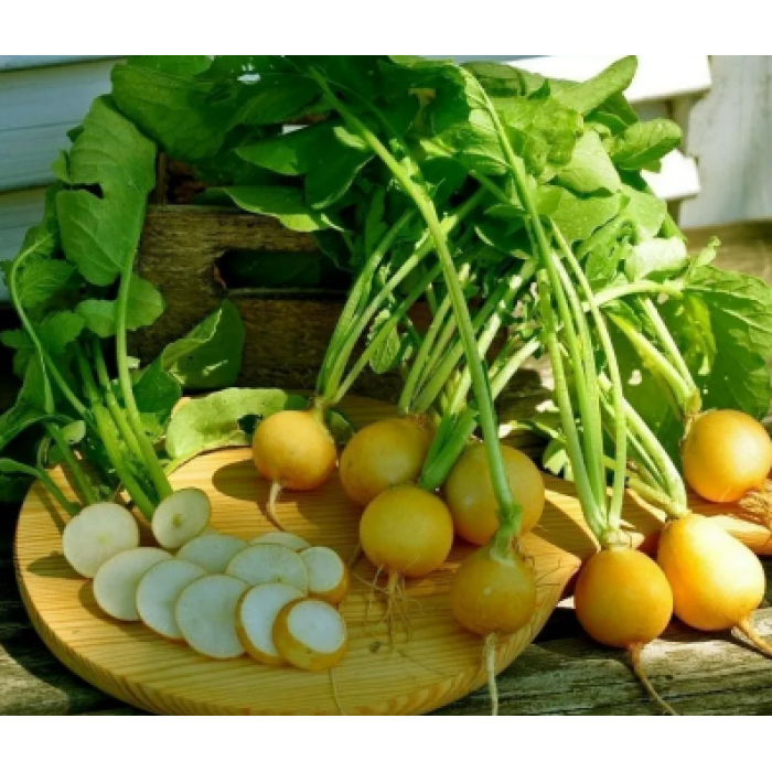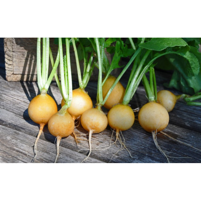 Этот старинный чешский сорт образует стройные округлые корнеплоды, покрытые тонкой желтой кожицей. Мякоть прозрачная белая, сладкая, с высокими вкусовыми качествами. Этот особенный круглогодичный редис не имеет склонности быстро перерастать, долго оставаясь сочным, нежным и вкусным. Период от всходов до созревания составляет около 30 дней.