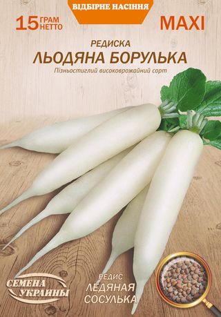 Поздний сорт. Период от всходов до спелости 35-40 дней. Корнеплоды большие, удлиненной формы, длиной 5-7 см, массой 45-60 г, белого цвета. Без ГМО.