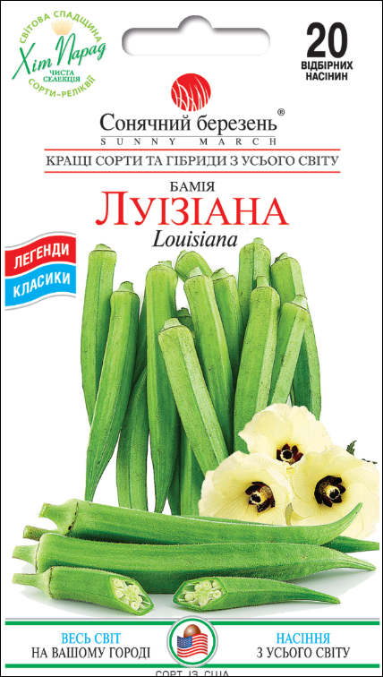 Хорошо разветвленные растения довольно компактны, достигая 5-6 футов в высоту (150-190 см), и супер продуктивны! Это классический сорт бамии, которому доверяют огородники в течении многих лет! Он легко растет и дает хорошие урожаи все лето. Длинные, пряные, очень мясистые стручки темно-зеленого цвета с мягкой текстурой, вкусны и тонко ароматизированы. Это совершенная бамия для консервирования и жарки, сохраняющая свой яркий цвет при замораживании, консервировании и варке. Для лучшего аромата и качества, их собирают в размере 3-4 дюймов (7-10 см). Бамия является теплолюбивой культурой, нуждаясь в теплой погоде до начала её интенсивного роста. Растения начинают плодоносить на 55-й день после всходов, когда они около фута (30 см) в высоту, и будут отдавать урожай до заморозков при регулярных сборах (через 3-4 дня). Наполненная ценными питательными веществами, эта бамия имеет мягкий вкус, который многие сравнивают с баклажанами и спаржей.