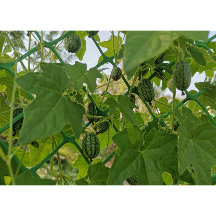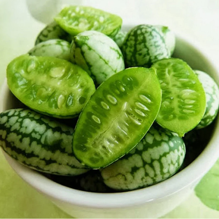 Мелотрия — экзотическая овощная лиана из семейства тыквенных, также известная как «мышиный арбуз» или «мини-огурчик». Растение формирует миниатюрные плоды длиной до 4 см, внешне напоминающие арбузы, а по вкусу — освежающие, с лёгкой кислинкой, как огурец с лимоном. Плоды употребляют в свежем виде, добавляют в салаты и закуски, а также маринуют.