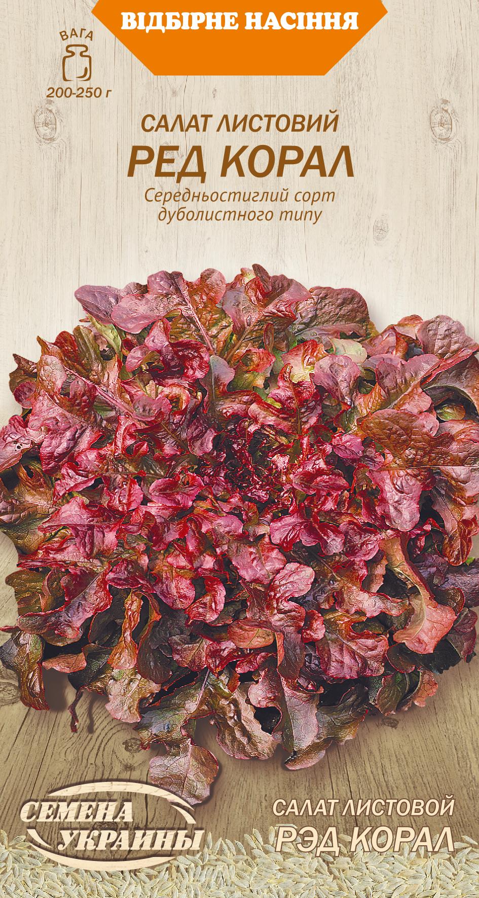 Среднеспелый сорт дуболистового типа. Период от всходов до начала сбора 35-45 дней. Розетка плотная, среднего размера, высотой 20-25 см, диаметром 30-40 см, массой 200-250 г. Листья гладкие, красной окраски. Без ГМО.... Читать далее...