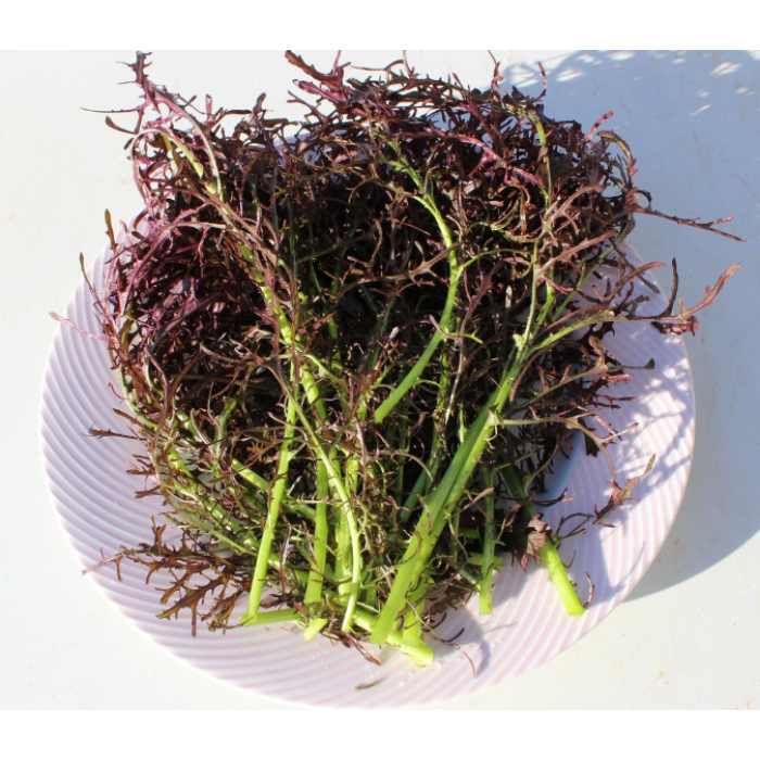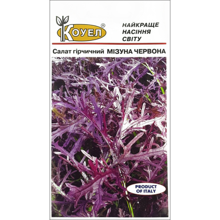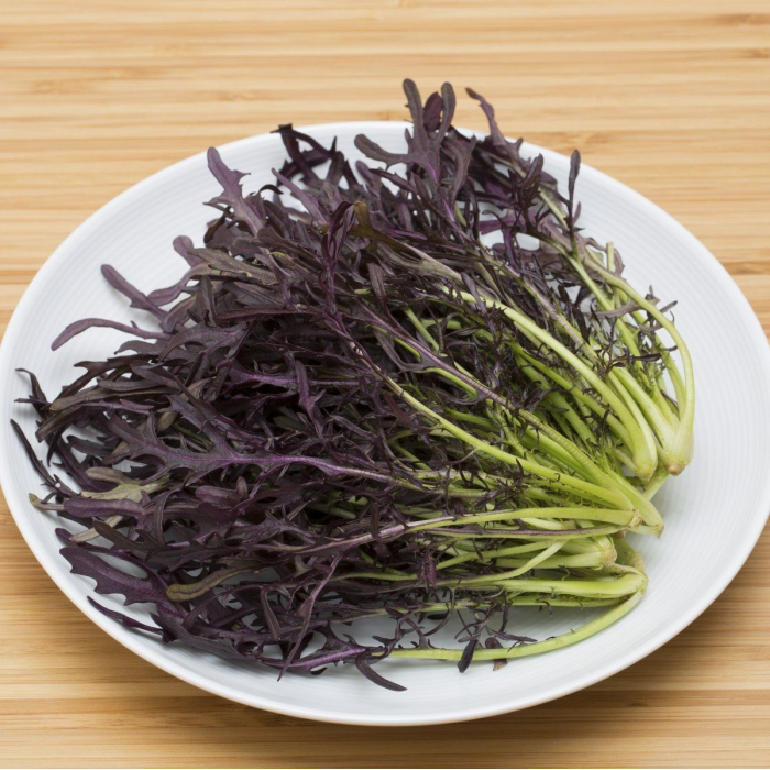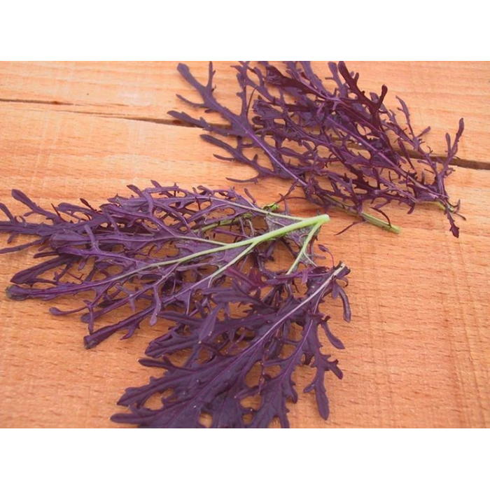 Японская разновидность горчичного салата с красным листьями. По свойствам похож на руколу, но имеет более нежную текстуру. Вкус пряный с легким ароматом свежемолотого перца, неповторимый и пикантный. Способствует укреплению иммунитета, предупреждает онкозаболевания. Используется для приготовления салатов.