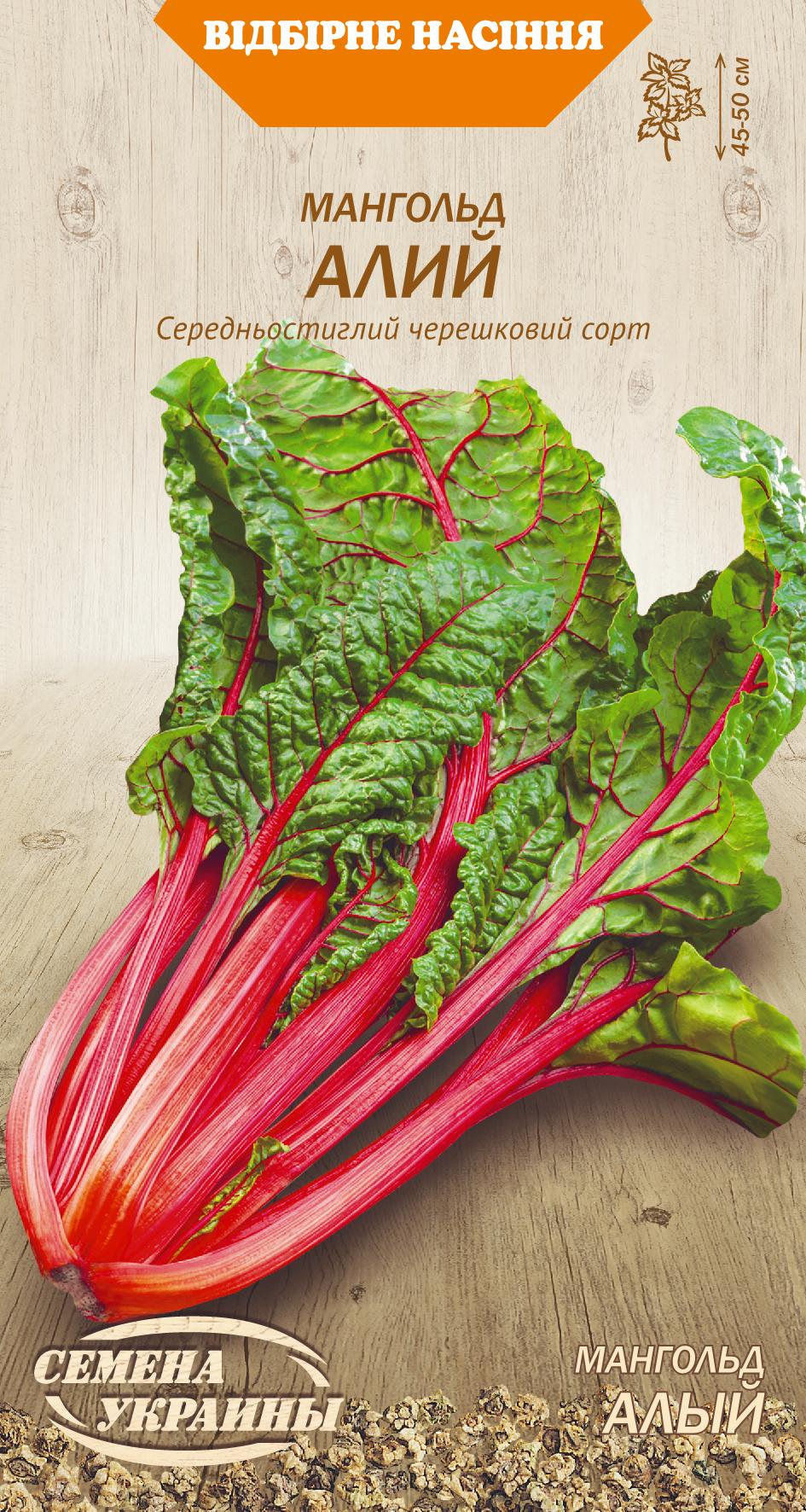 Среднеспелый сорт. Период от всходов до спелости 80-90 дней. Растение прямостоячее, высотой 45-50 см. Листья большие, удлиненно-овальной формы, слабо пузырчатые, зелено-красной окраски. Черешки толстые, длиной 25-30 см, красного цвета. Без ГМО.