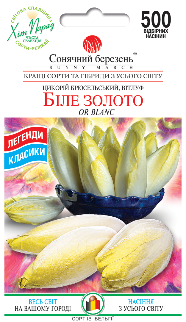 Известный для отбеленных, бланшированных головок «шиконов», которые любят гурманы. Брюссельский Witloof – это традиционный тонко–текстурированный сорт, используемый для выгонки. Он производит плотно упакованные высококачественные листья и является одним из лучших дегустационных зимних овощей. Witloof (что означает « белый лист» на фламандском языке) обладает восхитительным, острым, неповторимым ароматом. Его надо укрыть от света, чтобы получить характерный бледный желтый цвет, но его можно, также, вырезать молодым для использования без осветления. Сырые, вареные, запеченные, жареные, карамелизированные, тушеные, сладкие или соленые, есть бесконечные способы насладиться этим цикорием. Он подается в большинстве стран Центральной Европы как горячее блюдо, но также, иногда, используется в салатах. Одна из лучших самых вкусных салатных культур.
