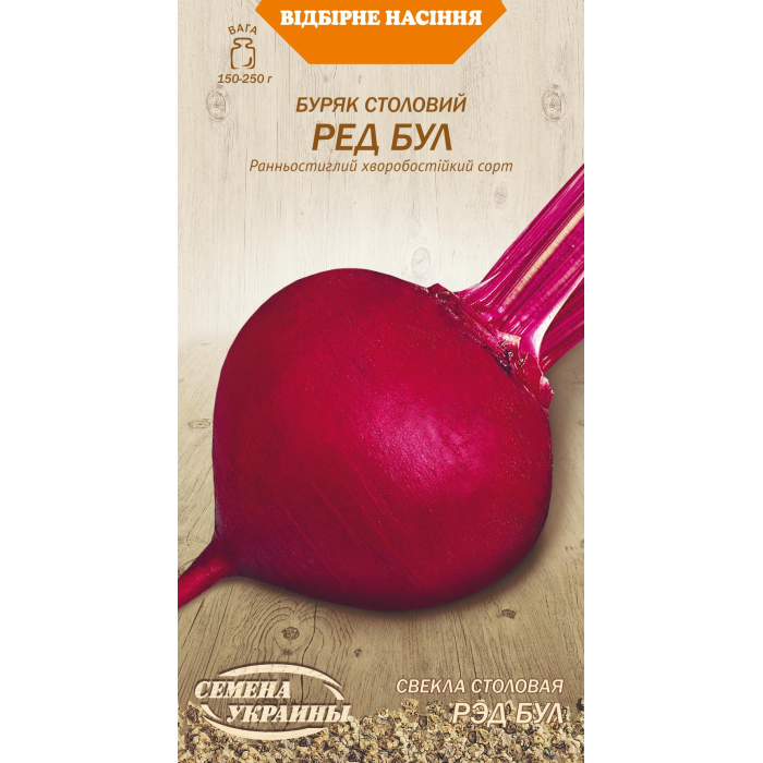 Ранний сорт. Период от всходов до спелости 90-100 дней. Корнеплоды среднего размера, округлой формы, весом 150-250 г, бордовой расцветки. Разрез темного красного цвета. Без ГМО.... Читать далее...