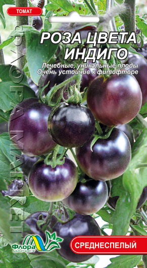 «Indigo Rose» - среднеспелый кистевой сорт иностранной селекции из серии черных томатов. Отличается большой полезностью и лекарственными свойствами плодов. Куст до 1,2 м, стройный, малооблиственный. Сорт урожайный, вкус спелых плодов хороший, сладкий, мякоть красная. Плоды растут небольшими кистями и почти полностью окрашены в фиолетовый цвет. Масса плода 35-70 г. Формировать лучше всего в 1-2 стебля. Феноменально устойчив к фитофторе. Использование универсальное.