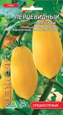 Среднеспелый - 110-120 дней от всходов до начала плодоношения. Растение индетерминантное. Куст высокорослый, требует формирования и подвязки. Плод перцевидный, гладкий или ребристый, средней плотности. Окраска незрелого плода светлая зеленая, зрелого - желтая. Плоды малосеменные, сочные, ароматные, содержание кислот пониженное. Масса зрелых плодов 65-80 г, устойчивы к растрескиванию. Вкус отличный. Транспортировку переносят хорошо. Жаростойкий, засухоустойчивый. Устойчив к вершинной и корневой гнилям. Для открытого грунта и пленочных теплиц.