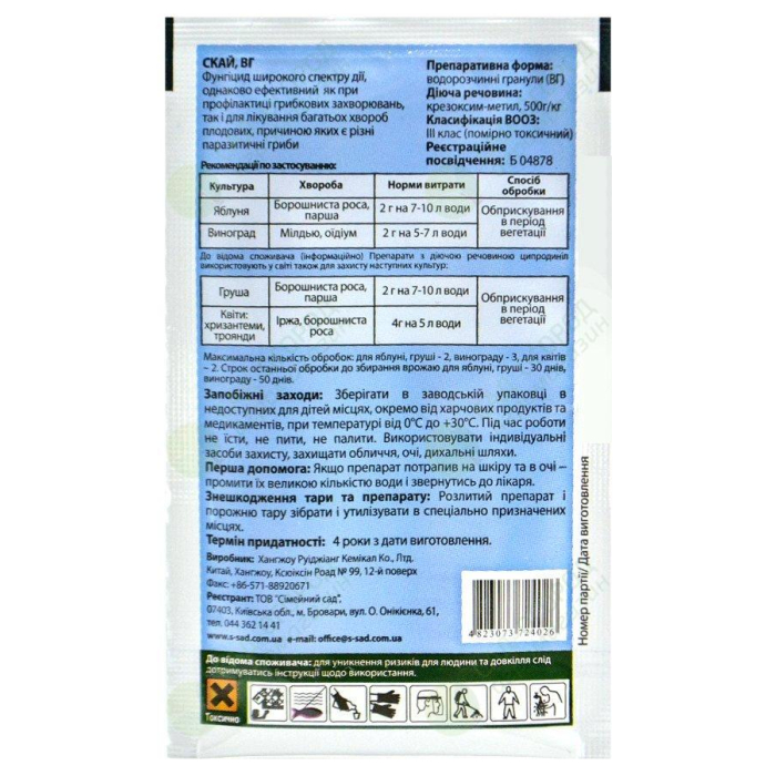 Фунгицид «Скай» — системный препарат для эффективной защиты растений от широкого спектра грибковых заболеваний. Действующее вещество быстро проникает в ткани растения и распространяется по его сосудистой системе, обеспечивая длительную профилактическую и лечебную защиту.