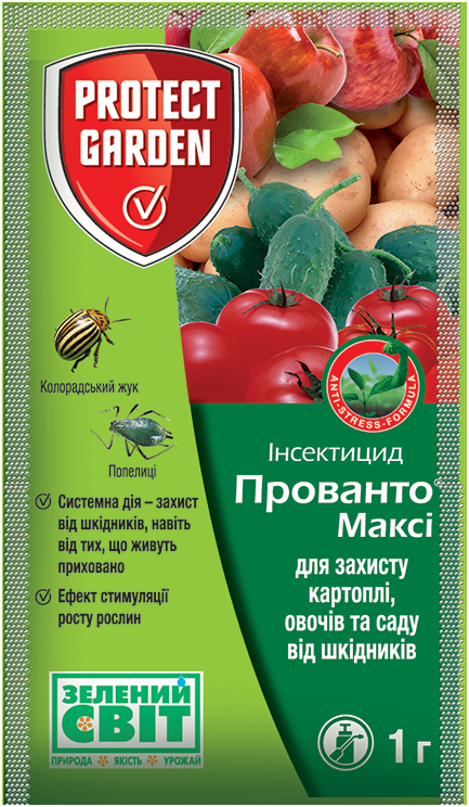 Прованто Макси - высокоэффективный малотоксичный инсектицид системного и контактного действия против широкого спектра вредителей с длительным периодом защиты. В процессе разложения Прованто Макси образуется вещество, которое структурно похоже на естественный укрепитель иммунитета и усилитель роста растений, что способствует физиологическим изменениям в растениях и приводит к повышению интенсивности их роста.