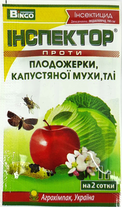 Высокоэффективный малотоксичен инсектицид системного и контактного действия против листогрызущих и сосущих вредителей сада: яблочная плодожорка, листоминуючи моли, листовертка, яблоневый цветоед, калифорнийская щитовка, тля и другие.