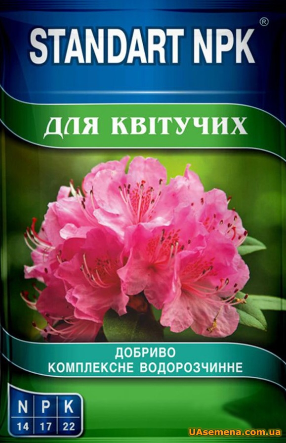 Стандарт NPK, кр. для цветущих - комплексное водорастворимое минеральное удобрение для сбалансированного питания цветущих растений. Увеличенное количество фосфора и калия благоприятно влияют на бутонизацию, яркость цветов и продолжительность цветения.