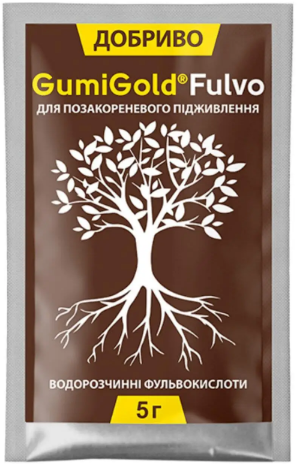 GumiGold® Fulvo - это сухие концентрованные фульвокислоты, которые являются удобрением со свойствами стимулятора роста и антистрессантуа. Они применяются для внекорневой подкормки всех сельськохозяйственных культур. Влияние удобрения на растение проявляєтся в усилении активизации обмена и энергетических реакций в растении, усилении фотосинтеза и дыхания. Результатом использования удобрения стает ускорение деления клеток, роста и розвития, улучшение формирования генеративных органов, увеличение урожайности, усиление иммунитета и устойчивость к неблагоприятным условиям выращивания.