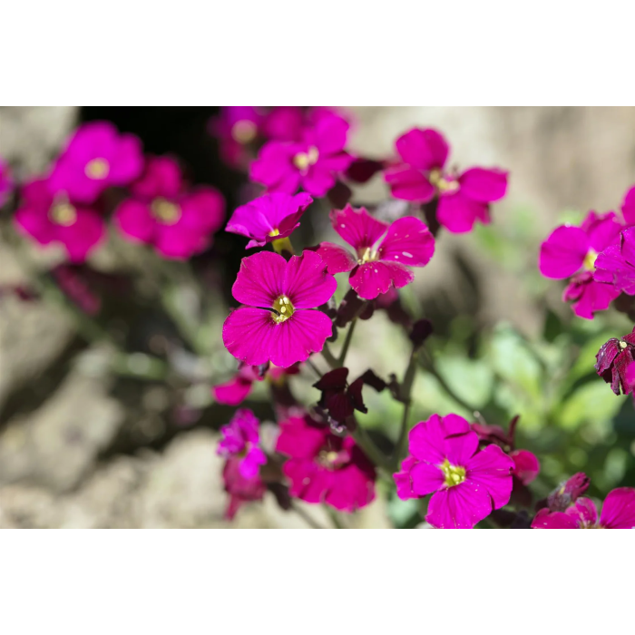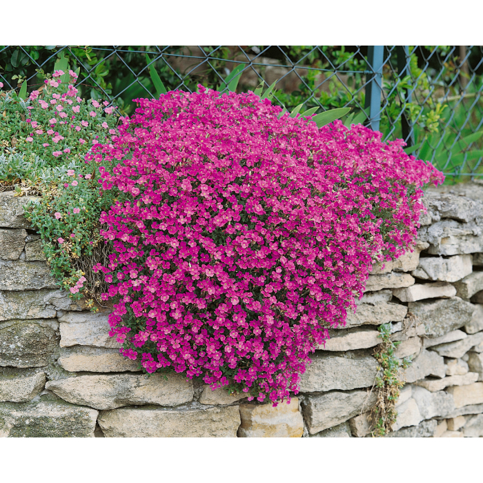 Аубрієта «Рожево-фіолетовий каскад» - низькорослий ґрунтопокривний багаторічник, що утворює щільні квітучі килими та мальовничі каскади. Під час цвітіння рослина практично повністю покривається безліччю дрібних яскравих квіток рожево-фіолетового відтінку. Ідеально підходить для альпійських гірок, рокаріїв, бордюрів, підпірних стінок та контейнерних посадок.