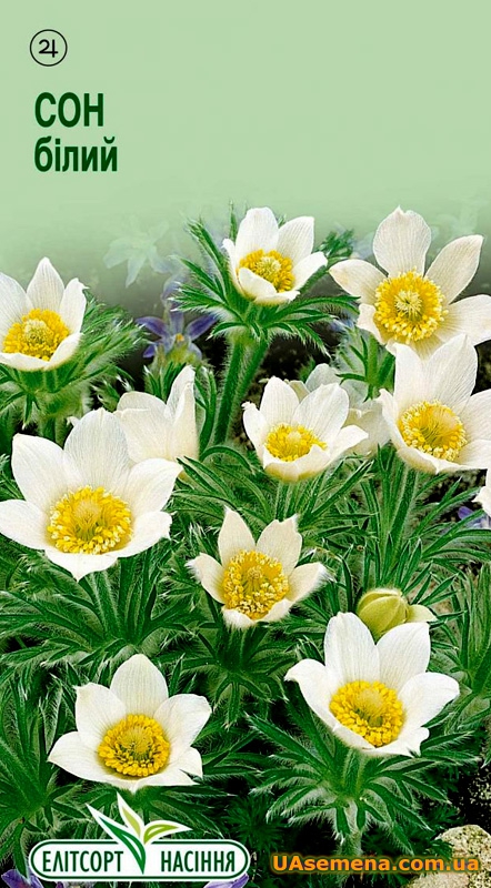 Багаторічна рослина, висотою до 15 см. Квітки до діаметру, білі, з м'яким опушенням, що никнуть. Квітне з квітня протягом місяця. .Насіння краще висівати відразу на постійне місце, оскільки рослини не переносять пересадк... Читати далі...