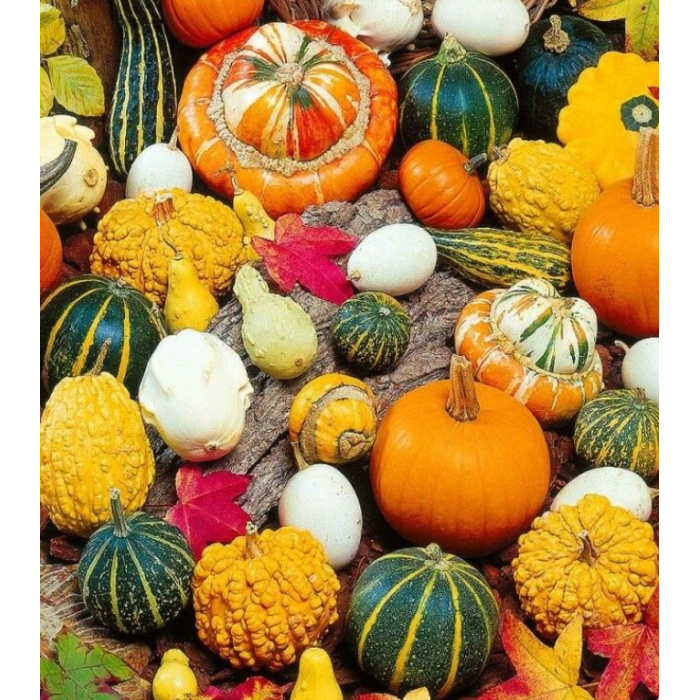 Оригінальна суміш декоративних сортів з мініатюрними плодами химерних забарвлень і форм: груш, пляшечок, кульок, мандаринок; з гладкою і горбистою шкіркою - білі, зелені, помаранчеві, крапчасті, смугасті, візерункові. Для вертикального озеленення зон відпочинку, для зимових інтер’єрних композицій. Тепло- і світлолюбні, прекрасно ростуть на родючому пухкому грунті.