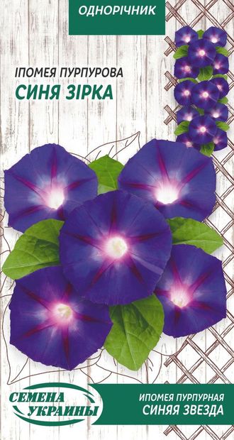 Однорічна рослина. Стебла виткі, довжиною 2-2,5 м. Квітки воронкоподібної форми, діаметром 4-5 см, синього забарвлення з фіолетовою зіркою. Використовується для вертикального декорування балконів, терас, огорож та альтан... Читати далі...
