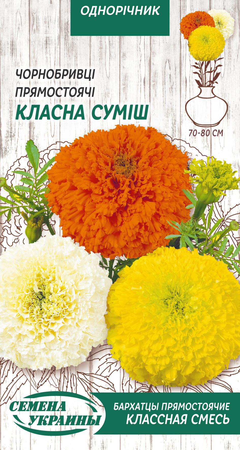 Насіння - Чорнобривці Класна суміш, прямостоячі, 0,5 г.