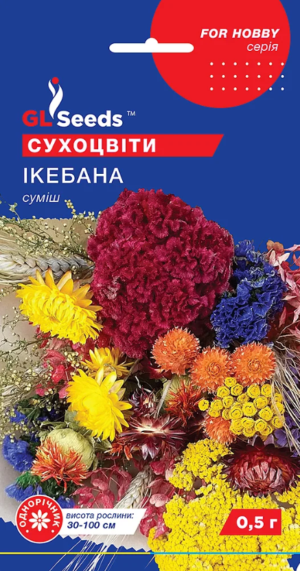 Ексклюзивна суміш цікавого сухоцвіту! Включає невибагливі, високодекоративні види зі світового асортименту. До складу входять: амаранті, бризу, геліхризумі, кермек, гомфрені, лонас, акроклінум та ін.