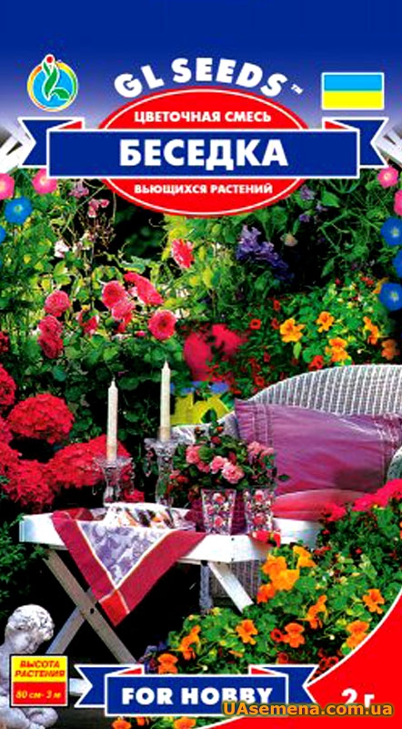 У квіткову суміш Альтанка входять розкішні кучеряві рослини різноманітного забарвлення. Спеціально підібрана суміш, що забезпечує ефектне декорування альтанок, грат, огорож, озеленення стін та балконів. Композиція включає наступні рослини: Запашний Горошок, Іпомея Пурпурна, Іпомея Кларк Блю, Іпомея Скарлет Про Хара, Настурція Плетиста та ін.