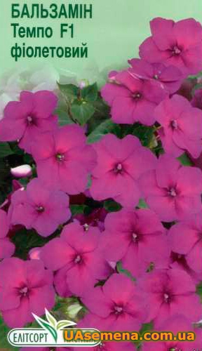 Насіння бальзаміну Темпо гібридного по 5 насінин в упаковці. Популярна однорічна рослина. Стебла прямостоячі, висотою 25-30 см. Квітки до 4 см у діаметрі. Насіння слід висівати з кінця лютого до початку квітня. Посіви накривають склом і тримають при температурі 20-22 градусів і в першу пікірування, в міру підсихання субстрату зволожують теплою водою. За таких умов насіння проростає через 2 тижні. З появою сходів скло потрібно підняти, а за деякий час прибрати зовсім. Сіянці необхідно пікірувати (2 рази) - у стадії 2-3 справжніх листків (3x3 см), потім через місяць. У період росту та цвітіння рослин потрібно регулярно поливати. Для рослин підходить родючий, легкий, повітропроникний та вологоємний, злегка кислий ґрунт. Висаджують у відкритий ґрунт, коли пройдуть останні весняні заморозки. Після посадки ґрунт потрібно добре полити та замульчувати. Бальзаміни широко використовуються в різних видах квіткового оформлення для балконів, лоджій, терас. Можна висаджувати в робітках, на клумби, у квіткові вази, групами на газоні. Вони рясно цвітуть протягом усього літа.