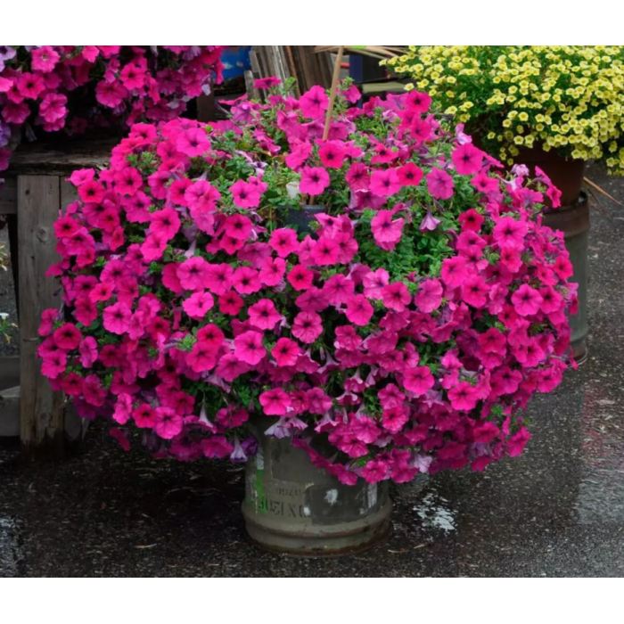 Новітній вид каскадної великоквіткової петунії. Рослини сильно гілкуються, рясно і тривало цвітуть, утворюючи ефектний каскад довжиною 80-100 см. Квітки d=6-8 см дивовижного темного рожевого забарвлення, з фестончатим кр... Читати далі...