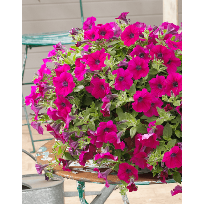 Новітній вид каскадної великоквіткової петунії. Рослини сильно гілкуються, рясно і тривало цвітуть, утворюючи ефектний каскад довжиною 80-100 см. Квітки d=6-8 см дивовижного темного рожевого забарвлення, з фестончатим краєм. З успіхом використовується в ландшафтному оформленні, як ампельна та ґрунтопокривна рослина. Регулярні підгодівлі позитивно впливають на довжину звисаючих пагонів.
