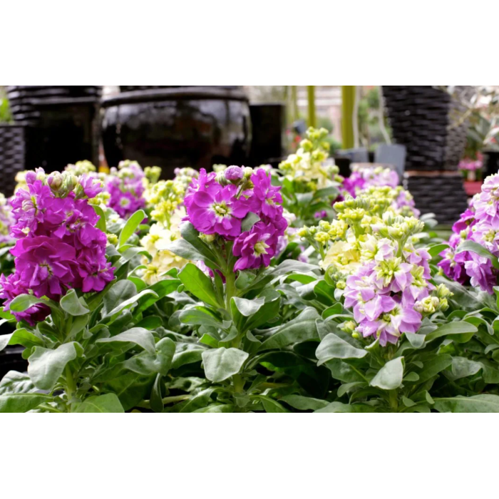 Одностебельна або гілляста рослина, висотою від 30 до 100 см з красивими колосовидними суцвіттями. Квіти великі, махрові, діаметром до 6 см. Забарвлення біле, рожеве, червоне, бузкове, блакитне, синє. Неповторний сильний аромат зробив його дуже популярним. Використовують для букетів, на рабатках, балконах, міксбортерах.