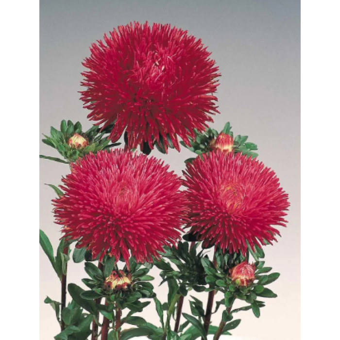 Айстра китайська Гала (Callistephus chinensis Gala) - новий чудовий сорт айстри для зрізу. Кущ пірамідальної форми, висотою 70-80 см, з численними міцними квітконосами. Суцвіття великі, щільні, густо-махрові, кулястої форми, діаметром 9-10 см, різноманітних яскравих забарвлень. Пелюстки закручені по довжині в трубочки і загнуті всередину суцвіття. Цінність даного сорту в ранньому, тривалому цвітінні і стійкості до хвороб. На розсаду насіння висівають у березні - квітні. Пікіровку проводять у фазі 2-3 справжніх листочків за схемою 5x5. У відкритий грунт рослини висаджують у середині травня. При безрозсадному способі насіння висівають на постійне місце ранньою весною або під зиму. Невибаглива у вирощуванні, добре реагує на підживлення.