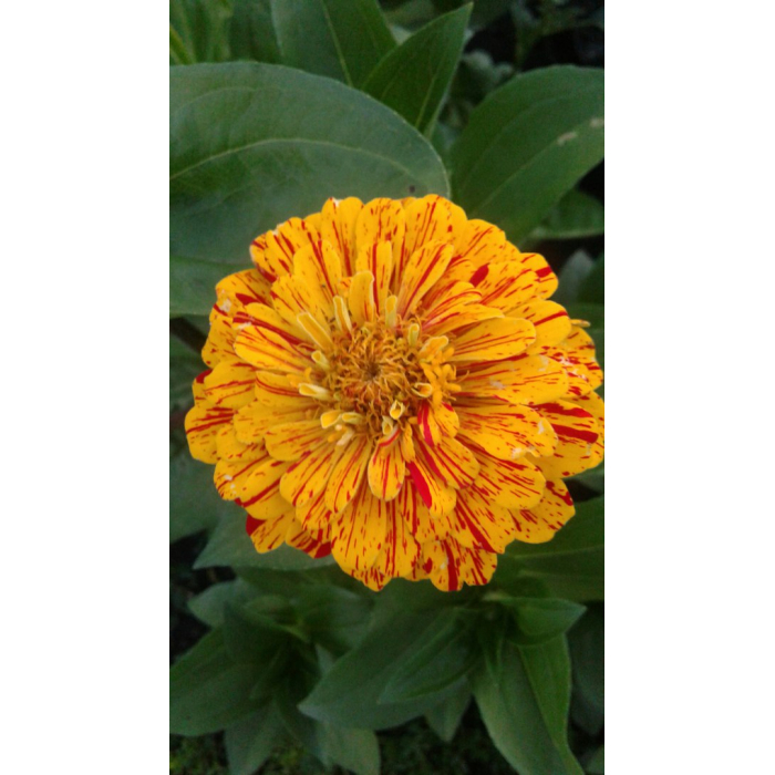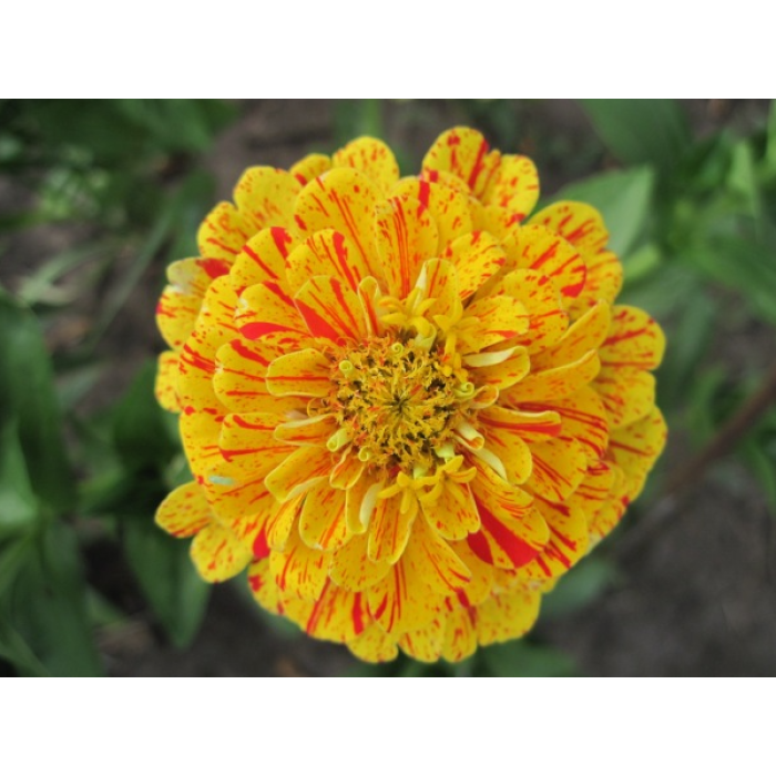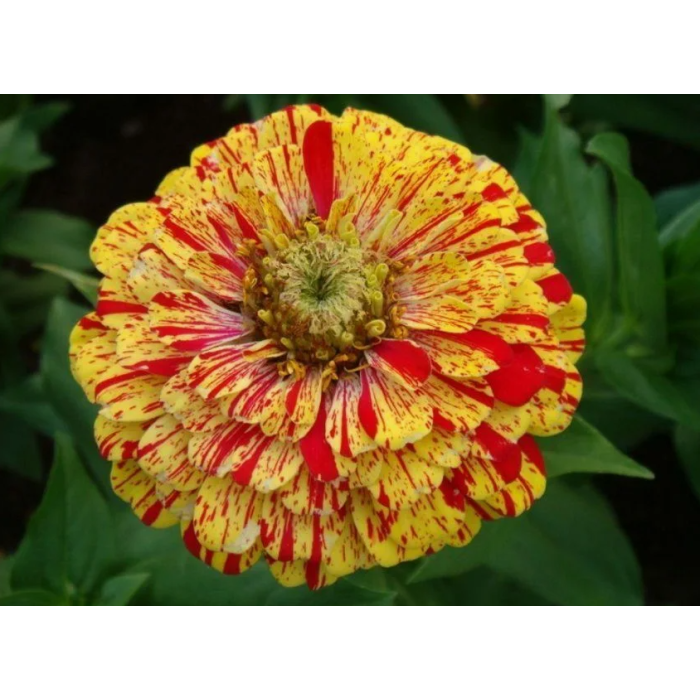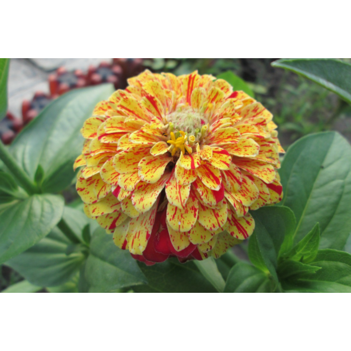 Цинія Кан-Кан - яскравий і ошатний сорт цинії з оригінальним махровим забарвленням пелюсток. Квітки великі, діаметром до 10 см, ефектно переливаються відтінками жовтого і червоного кольорів. Рослини компактні, висотою до 60 см, з міцними квітконосами, стійкими до вітру і дощу. Підходить для прикраси клумб, рабаток, міксбордерів і на зрізку - в букеті довго зберігає декоративність.