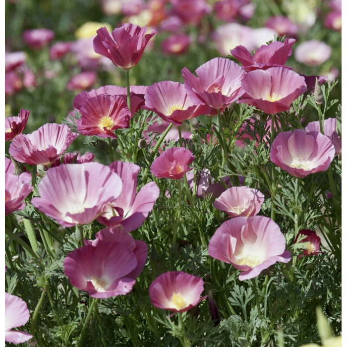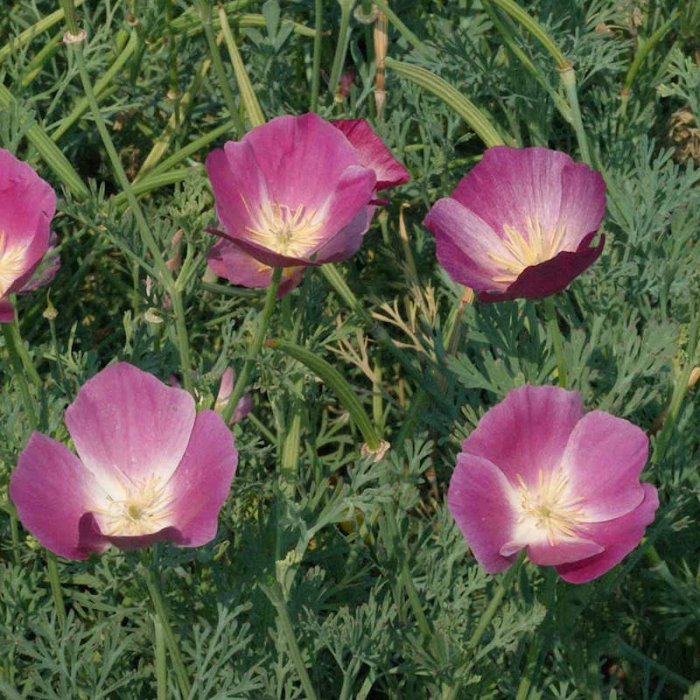 Ешшольція каліфорнійська пурпурна - витончений однорічник з шовковистими чашоподібними квітками насиченого пурпурового кольору. Формує акуратні компактні кущики з ажурним сизо-зеленим листям. Квітки розкриваються на сонці, створюючи ефект фіолетового бризу на клумбах, бордюрах та в рокаріях.