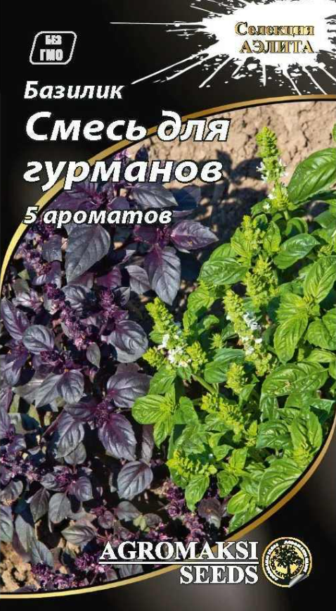 Дивовижна суміш з різних видів базиліка дозволить вам насолодитися багатогранним теплим ароматом, химерністю форм і кольорів декоративного листя. Рослини чудово відростають після зрізування. Базилік збуджує апетит та покращує травлення. Чудово підходить для споживання у свіжому вигляді, у кулінарії, для сушіння, заморозки та маринування. Склад сортів: Мрії султана, Єреванський, Робін Гуд, Лимончик, Кара-Кум.