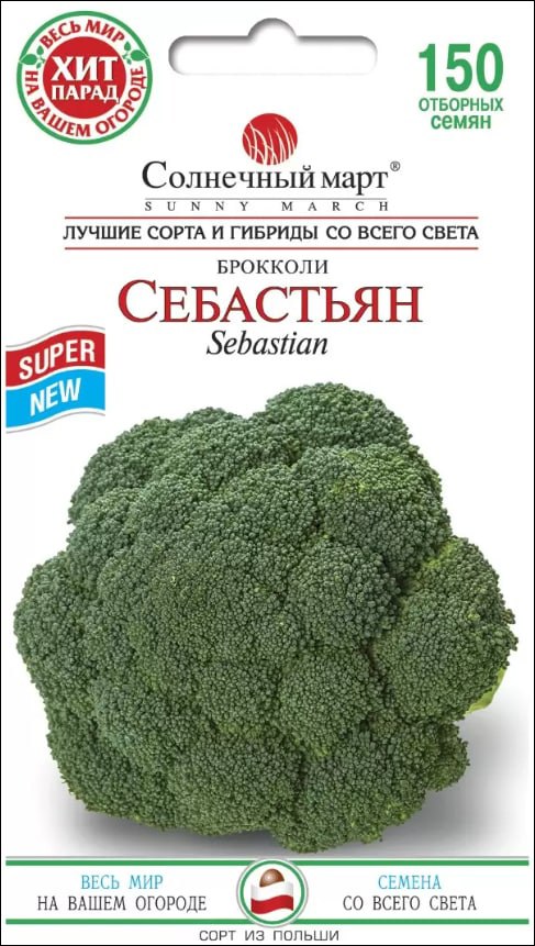 Цей новий сорт більш цінний для його масляного смаку та приголомшливої стійкості. Ця надійна зелена красуня - броколі улюблена в садах по всій Європі, приносячи щедрі врожаї, отримані ще більше завдяки відмінній стійкості до несправжньої борошнистої роси, ворогові багатьох інших сортів. Компактний і дуже продуктивний, цей сорт стане вашою броколі з першого сезону, в який ви її вирощуєте. Sebastian виробляє гладкі, красиві куполоподібні головки з намистинами середнього розміру, дуже щільно упаковані. Він підходить для вибору двох способів: або вся корона одним махом, або центральним стеблом, а потім численними бічними пагонами в міру їх виникнення. Різання основної голови сприяє зростанню бічних пагонів. У будь-якому випадку, ви знайдете смак чарівним, з комбінацією багатого, сміливого аромату та хрусткої текстури. Це сорт з компактною формою рослини та дуже енергійним зростанням. Має висоту близько 40-50 см. Ці куполоподібні головки досягають 15-20 см (6-8 дюймів) завширшки, масою 400-500 г, починаючи дозрівати через 40-50 днів після пересадки чудово адаптованих, компактних рослин, які встановлюють міцно утримувані, смачні зелені голови як навесні, так і восени.
