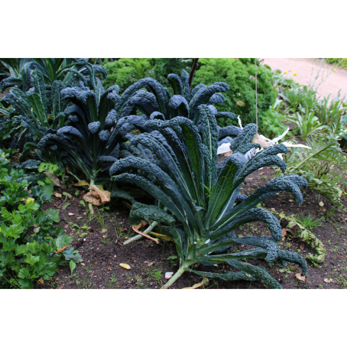 Донедавна кале Чорна пальма, Кавало Неро, або капуста Динозаврів був одним із найпотаємніших секретів Італії, про нього стало відомо лише в 19 столітті. Просто обожнюваний, особливо в Тоскані, він був важливим компонентом традиційних страв протягом століть. Неро ді Тоскана є членом сім'ї Кале, а не звичайною капустою. Вона дуже холодостійка і добре переносить літню спеку, терпітиме умови, які змусили б більшість капуст загинути. Витримує морози до -20 °С і всю зиму у Вас на городі будуть красуватися грядки цієї ажурної калі. Прекрасний урожай для зимового сезону. Смак та текстура покращуються, коли на початку зими настають морози, що вивільняють її цукор. Кале – це фантастична зимова супер-їжа, її можна збирати до весни. Чудова зимостійкість робить цю калі першим весняним овочом, коли інших садових продуктів ще мало. Рослини у вигляді пальми висотою від 90 до 200 см з ланцетним, прямим, димчастим чорно-зеленим листям, близько 60 см завдовжки, зморщеними і красивими, як висока савойська капуста. Легко вирощується для дитячого листя цілий рік. Популярна в Італії для приготування казкових супів та рагу, чудова при звичайній обсмажуванні. Для збору молодого листя калі висівають з ранньої весни до початку осені. Їх постійно збирають через 8 тижнів після сходів, залишаючи рослини, які зростуть до зрілих зимових калі.