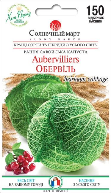Ця реліквія вирощується з 1800-х років на рівнині Обервіль (Aubervilliers) у Франції. Савойська капуста «Обервіль» - це старовинний скарб, який дає прекрасну голову капусти, міцну і важку, велику за розміром, з синьо-зеленим зовнішнім зморшкуватим листям і блідо-зеленою серцевиною. Cabbage Savoy Aubervilliers - дуже витривала рання капуста (80-90 днів), що вирощується з весни до пізньої осені. Савойська капуста є найніжнішою і найсолодшою з усіх видів капусти, з чудовим відмінним ароматом. М'яка текстура та ніжний аромат роблять савойю кращою капустою для використання у багатьох рецептах. Її можна використовувати на пару, в жаркому, у свіжих салатах або додати в супи або тушковані страви, але якщо ви хочете швидко поїсти... нічого дуже складного, вона чудова у сирому вигляді.