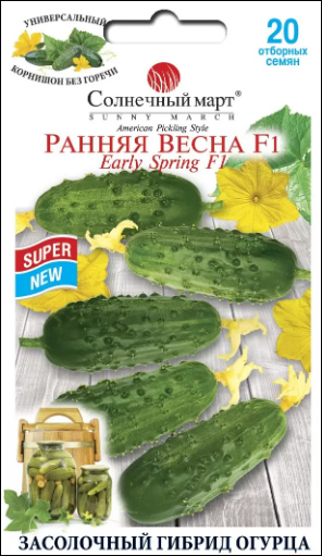 Холодостійкий гібрид сортотипу Miss Pickler (Міс Піклер) канадської селекції. Короткоплідний, ранній (40-45 днів) бджолозапильний з частковою партенокарпією, для відкритого грунту та плівкових укриттів. Зеленці дрібні, довжиною 6-8 см, великогорбчасті, білошипі, яскраві, темного зеленого забарвлення без білості, дуже смачні, не переростають. Гібрид відрізняється швидким та потужним початковим зростанням, характеризується рясним плодоношенням у несприятливих умовах вирощування. Красиві корнішони для засолювання. Через видатні смакові та засолювальні якості вважається одним з кращих гібридів для бочкового посолу, консервування та маринування. Корнішони вирівняні за розміром, що дозволяє без вибракування використовувати врожай для консервування, у тому числі і в невеликих банках.