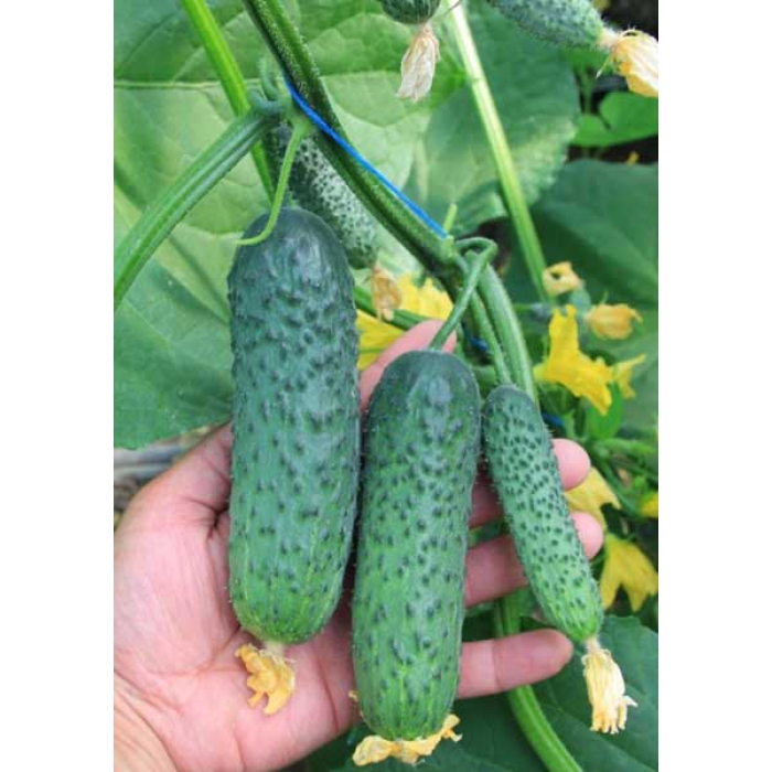 Ідеальний для малосольного квашення, класичного засолювання і консервації! Урожайний ранній (41-45 днів) бджолозапильний гібрид для відкритого грунту і плівкових теплиць. Корнішони овальної форми, короткі до 10 см красивого зеленого кольору, з хрустким м'якушем, прекрасним ароматом, без гіркоти та порожнеч. Має витривалість до стресів і захворювань.