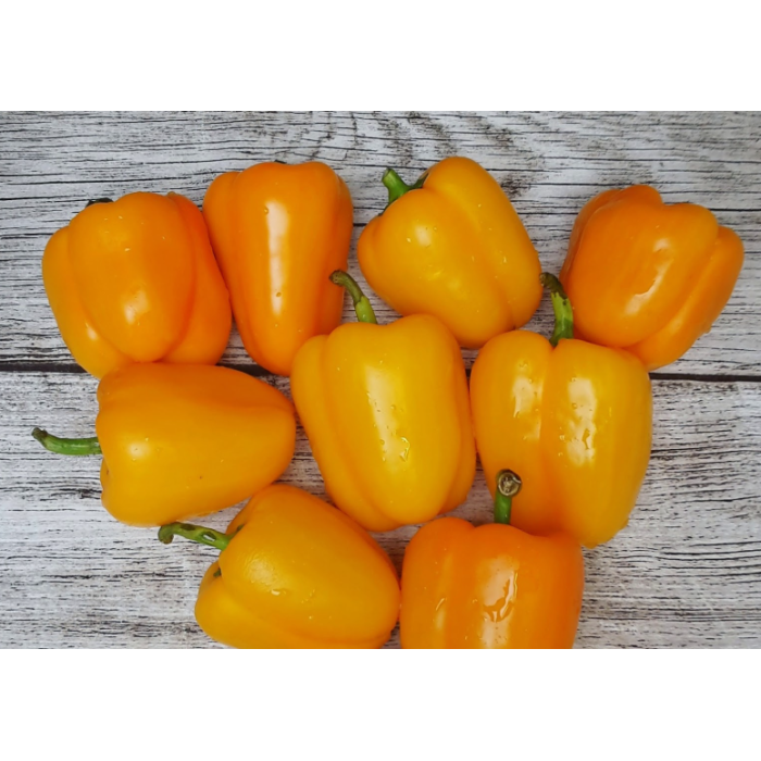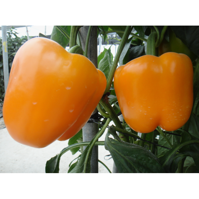 Плоди великі, кубовидної форми, гладкі, глянцеві, насиченого помаранчевого кольору в зрілому стані. Середня маса одного перцю - 150 г. М'якоть товстостінна (4-5 мм), соковита, ароматна і солодка. Ідеальний для свіжого споживання, приготування страв, запікання і консервування. Відрізняється стійкістю до стресів, високою зав'язуваністю плодів навіть у менш сприятливих умовах.