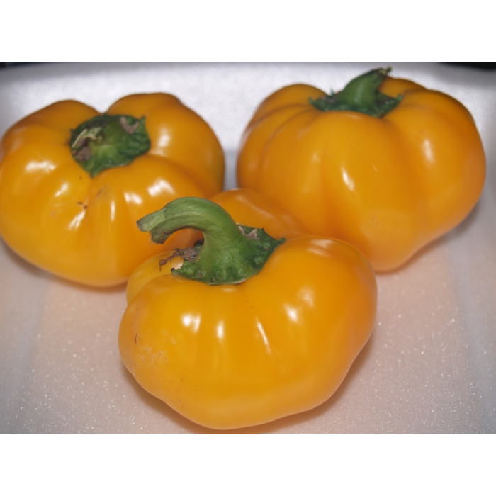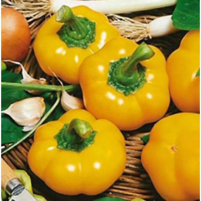 Ранній сорт. Вегетаційний період до біологічної стиглості 110-120 днів. Кущ штамбовий, заввишки 45-55 см. Плоди округлої форми, слаборебристі, масою 120-130 г, у біологічній стиглості жовтого кольору. Товщина стінки 7-9 мм. Використовується для споживання у свіжому вигляді, переробки і фарширування. Рекомендується для вирощування у відкритому ґрунті та плівкових теплицях.