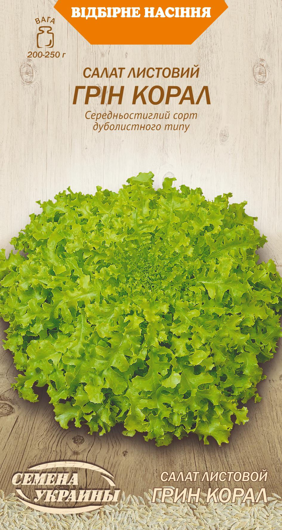 Насіння - Салат Грін корал, листовий, 1 г.