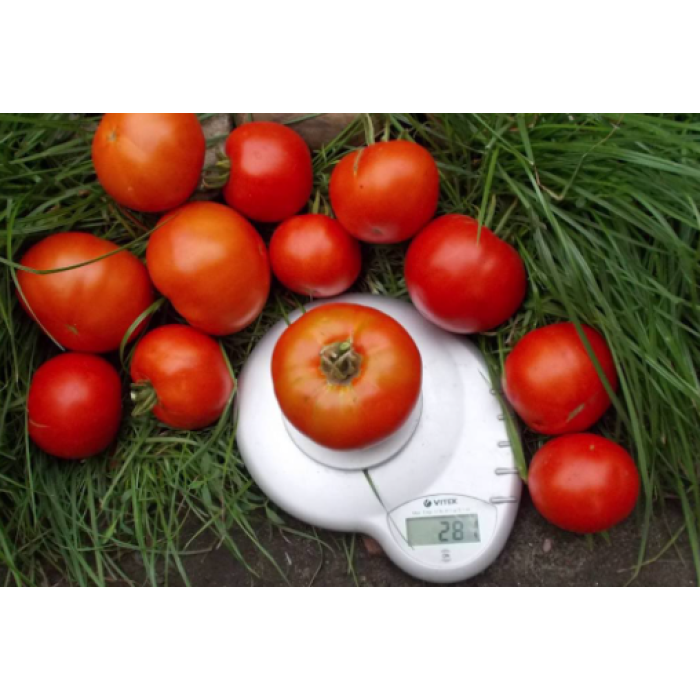 Ранній (80-95 днів), детермінантний сорт великоплідного томату для теплиць та відкритого ґрунту. Кущ середньорослий – до 1,2 метра у теплиці (у відкритому ґрунті до 0,9-1 м), потребує підв'язки до опори. Перше суцвіття над 7-8 листком, далі – через 2-3 листки. Плоди округло-плескаті, ребристі до плодоніжки, червоного кольору, м'ясисті, малонасіннєві. Смак хороший і відмінний, вага зрілих томатів – до 600 г. Для свіжого споживання та переробки на томатопродукти. Стійкий до основних хвороб томатів.