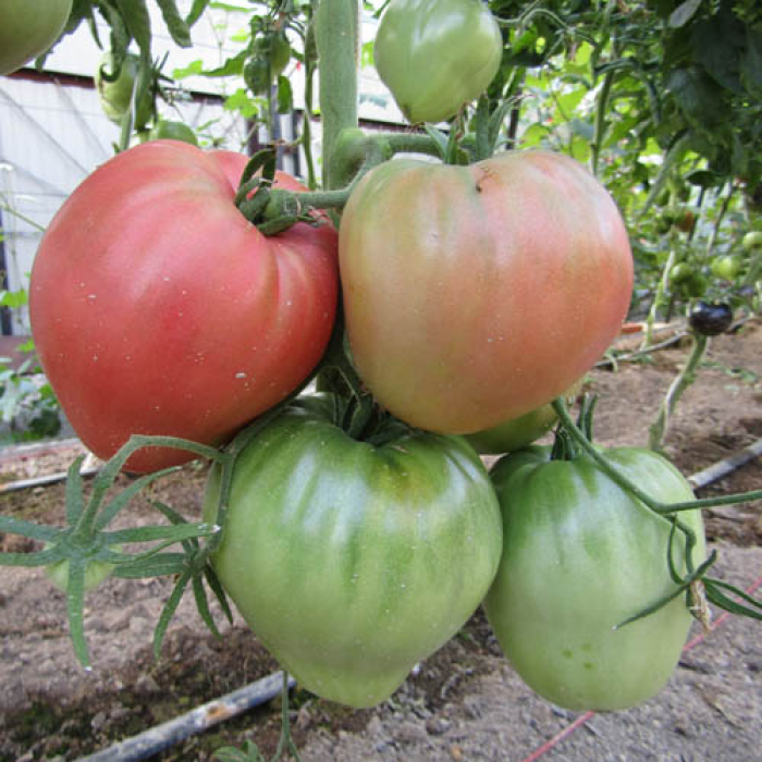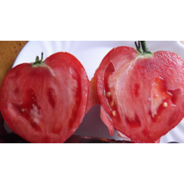 Середньостиглий сорт. Період від сходів до початку дозрівання 110-120 днів. Кущ високорослий, у відкритому ґрунті 100-160 см. Плоди великі, серцеподібної форми, масою 400-600 г, рожевого забарвлення. Без ГМО.... Читати далі...
