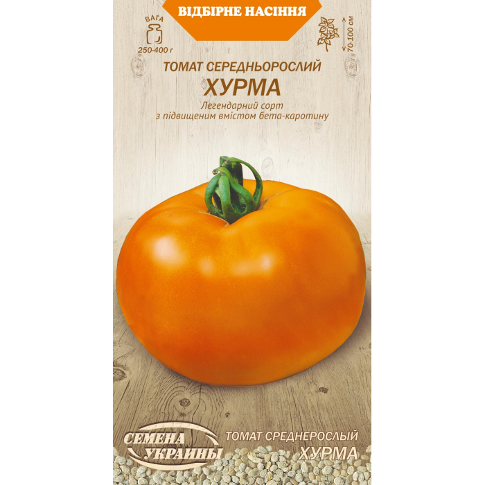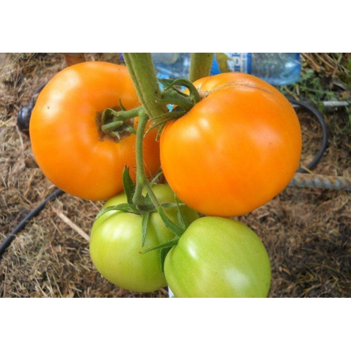 Середньостиглий сорт. Період від сходів до початку дозрівання 110-115 днів. Кущ напівдетермінантний, висотою 70-100 см. Плоди великі, округло-плескатої форми, масою 250-400 г, помаранчевого забарвлення. Без ГМО.... Читати далі...