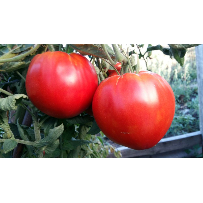 Індетермінантний, великоплідний, середньостиглий (112-117 днів), аматорський салатний сорт. Кущ сильнорослий, висотою 1,7-2,5 м. Плоди масивні, серцеподібні, насиченого червоного кольору, масою 600- 900 г, м'ясисті, мало... Читати далі...